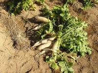 夏にまいたダイコン、こんなに大きく育ちました。たくさん収穫してね