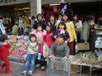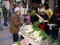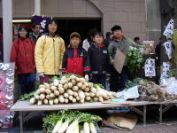 甲府市中心街で直売:自分達で収穫した農作物を自分達の手で展示、販売します。商業体験の他、中心市街地活性化の一翼を担います。