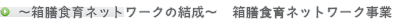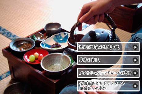 えがおつなげてでは、イベントや広告メディア等を通じて、 「箱膳」を使用した地域伝統食の体験を継続的に啓発していく 仕組みづくりを行い、日本食文化の保守を通じて、 食育の推進が生活習慣として根付くよう、努めています。
